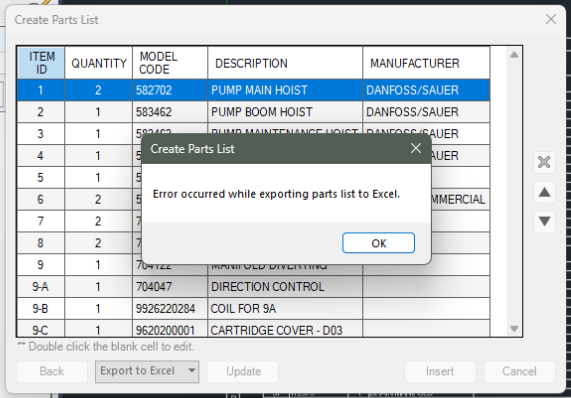 Fix: "Error Occurred While Exporting Parts List to Excel"