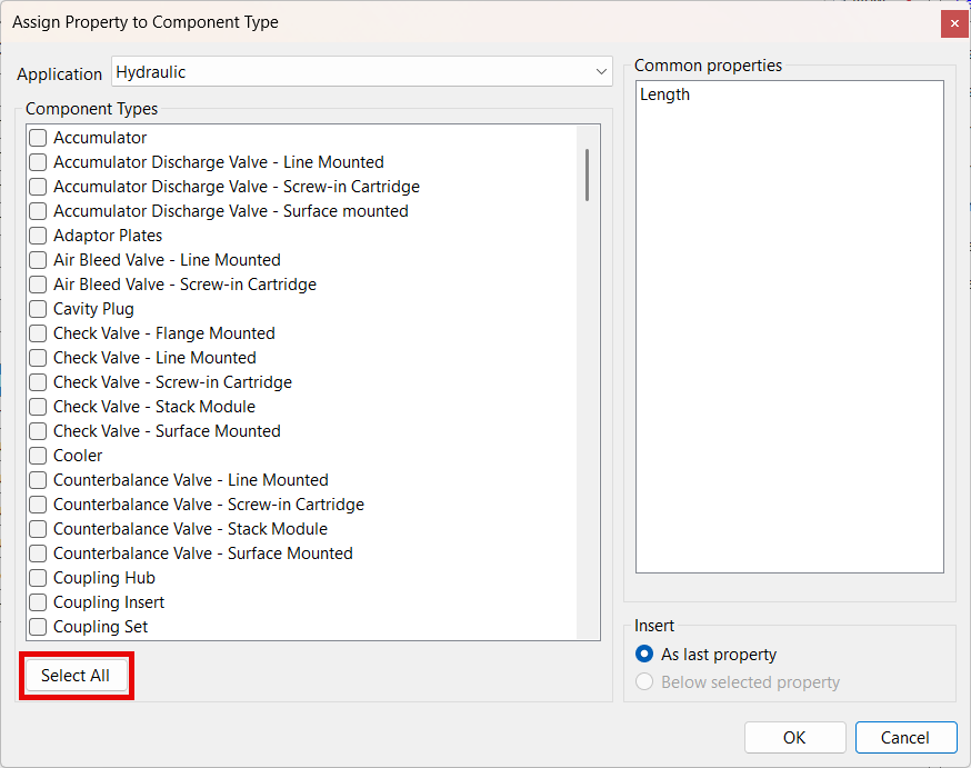 5. Click "Select All", then "None" to ensure that the property is not assigned to any component types.