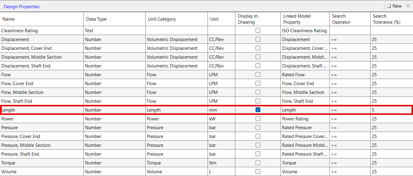3. Confirm whether any of the design properties in the list have "Display in Drawing" checked.