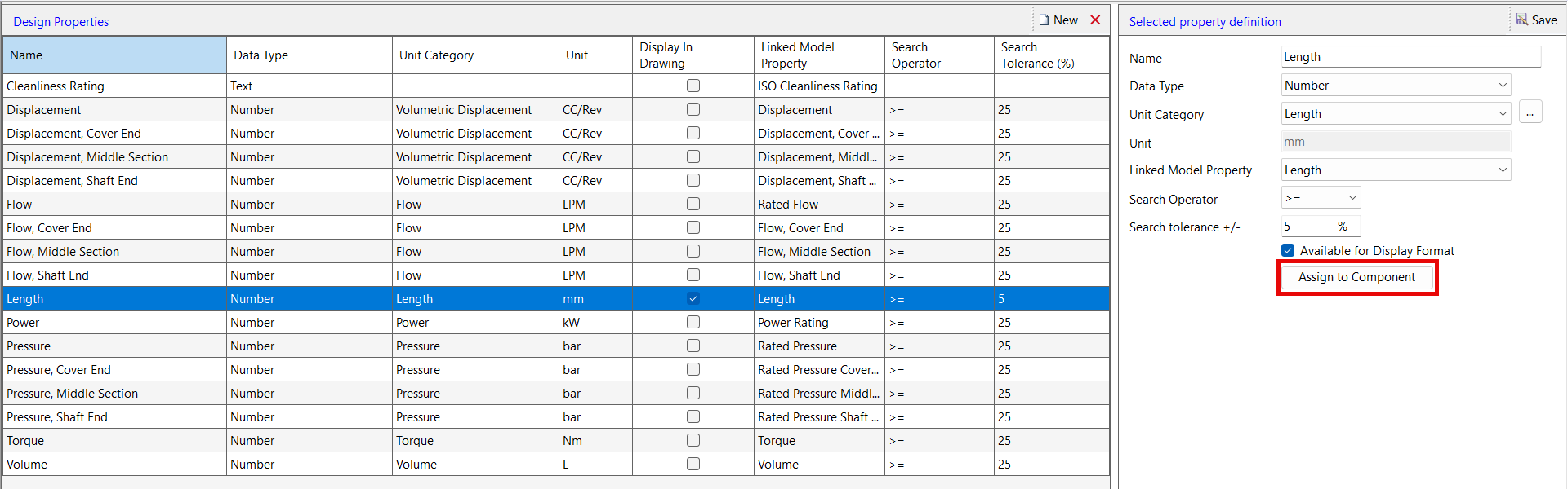 4. Select any design properties for which "Display in Drawing" is checked and select "Assign to Component".