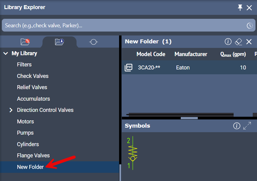 Result: The new model code is saved in the same folder in My Library from which the symbol was selected, associated with the same symbol.