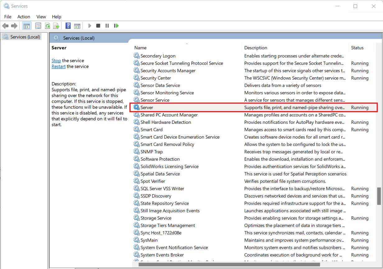 The previously uninstalled application can be reinstalled later, and it will automatically use a different port. - Check the services and ensure that the server is running.