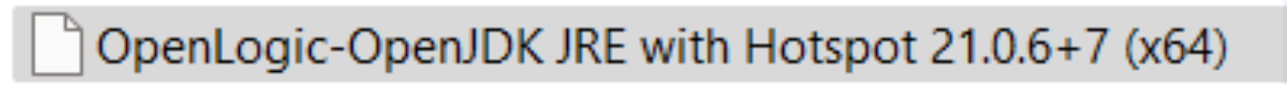 - Check the OpenJDK Version, it should be OpenJDK JRE 21.0.6+7 and can be checked by navigating to Control Panel\Programs\Programs and Features.